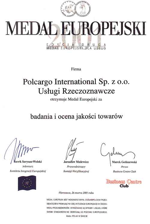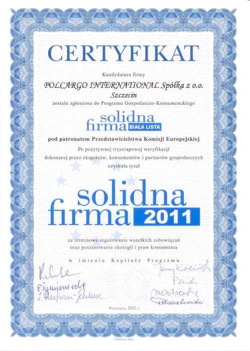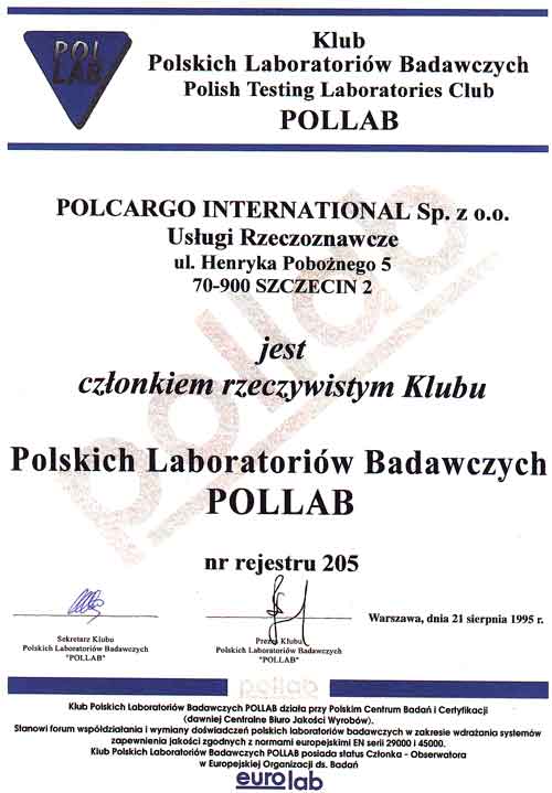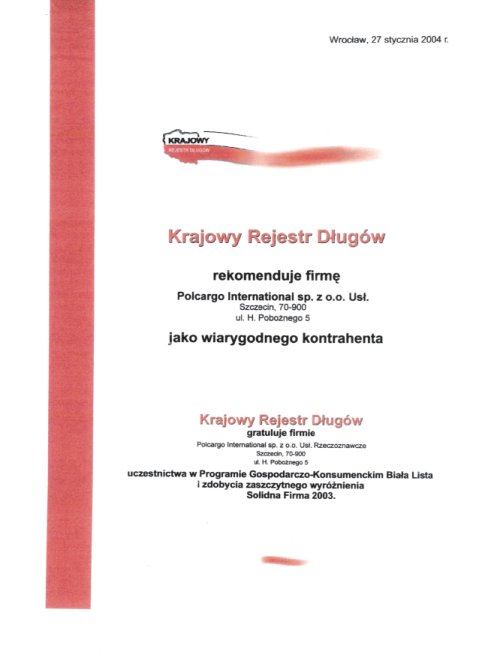 Na tej stronie znajdują się linki do stron zawierających certyfikaty potwierdzające kompetencje Polcargo International w podanym poniżej zakresie.